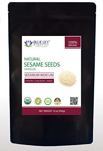 Blue Lily Organics Natural Sesame Seeds (Unhulled) 1 Lb - Raw, Non-GMO, Superfood Pouch, Calcium, Magnesium, Iron