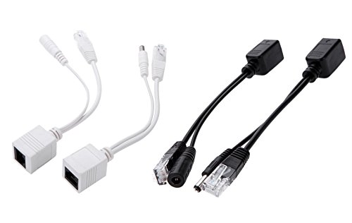 OdiySurveil 2Kits Passive PoE Injector and Splitter Kit with 5.5x2.1 mm DC Male and Female Connector(White and Black)