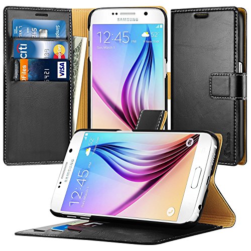 Vakoo Galaxy S6 Case, Premium-PU Leather Flip Wallet Mobile Phone Protective Case Cover for Samsung Galaxy S6 (2015) - Black