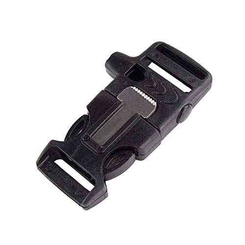 WOVTE 1.8 x 0.75 Inch Whistle Buckles with Flint Fire Starter and Striker for Paracord Bracelet Black Pack of 10