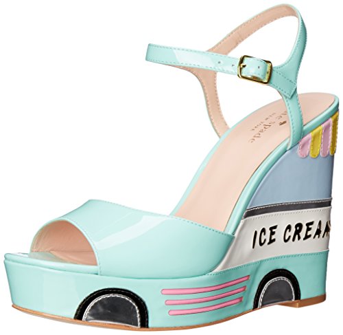 Kate Spade New York Women's Dotty Wedge Sandal, Mint Liqueur Lemon Yellow/Vibrant Pink/White Patent, 8.5 M US
