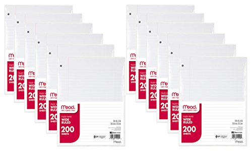 Mead Filler Paper, Loose Leaf Paper, Wide Ruled, 200 Sheets, 12 Packs (15200)