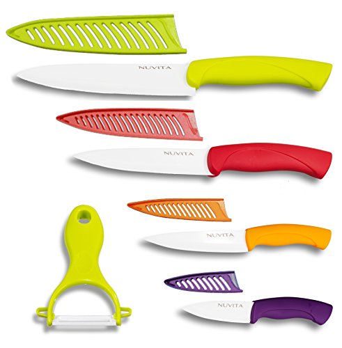 Nuvita Ceramic Knife Set, 9-Piece Professional Classic Knife Set - with Blade Guards, Multi-color Set