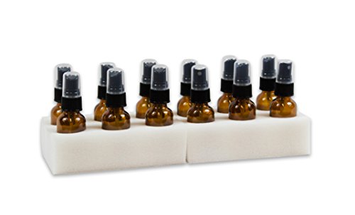 2dayShip Glass Bottles for Essential Oils With Black Atomizer Spray Tops, Amber, 1 Ounce, 12 Count