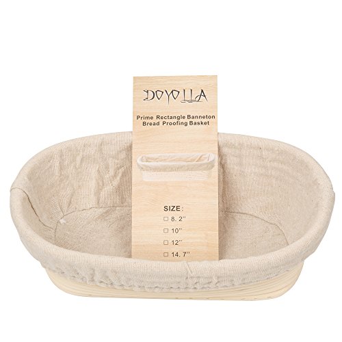 DOYOLLA 1pcs Oval Shaped 10" Banneton Brotform Bread Dough Proofing Rising Rattan Basket & Liner Combo