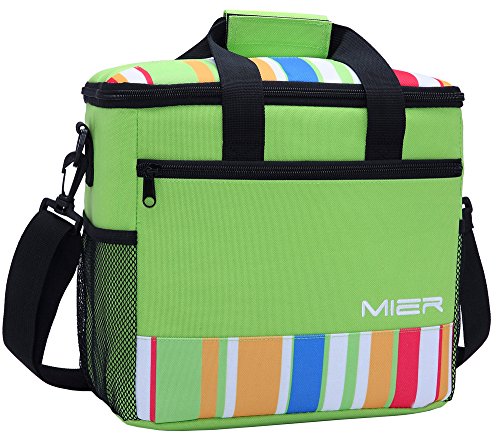 MIER 24 Can Large Capacity Soft Cooler Tote Insulated Lunch Bag Green Stripe Outdoor Picnic Bag