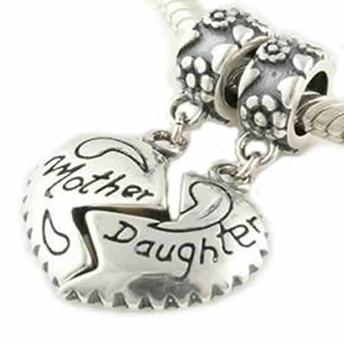 925 Sterling Silver Mother Daughter Love Heart Dangle Bead Fits Pandora Charms for Mom