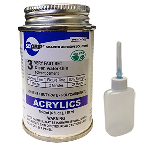 IPS Weld-On 3 Acrylic Plastic Cement with Weld-On Applicator Bottle with Needle, 4 oz Can, Clear