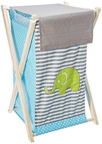 Bacati Elephants Hamper, Aqua/Lime/Grey