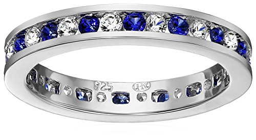 Sterling Silver Stackable Alternating Created Blue and White Sapphire Band Eternity Ring