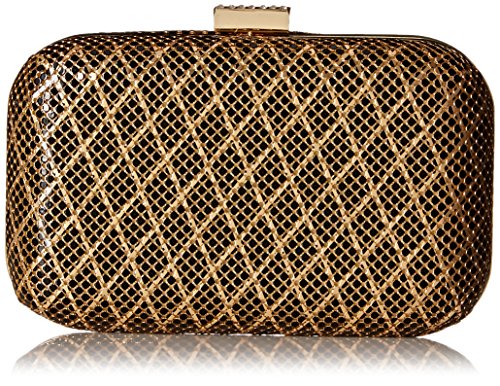 Jessica McClintock Mollie Criss Cross Mesh Minaudiere, Black/Gold