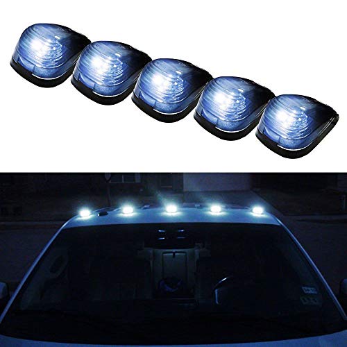 iJDMTOY Black Cab Smoked Lens White LED Rooftop Marker Lamps For Truck SUV 4x4, 5-Piece Roof Running Light Set Powered by (5) Xenon White 5050-SMD LED Lights