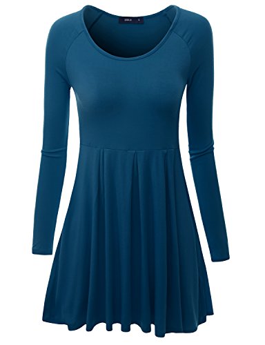 Doublju Women V-Neck Stretchy Fabric TEAL Top,XL