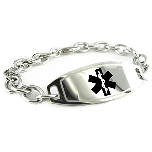 My Identity Doctor Custom Engraved Womens Medical Alert Bracelet, Steel O-Link Chain, Medium 6mm