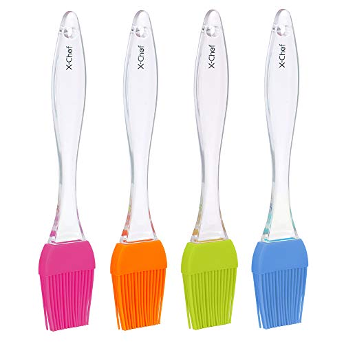 X-Chef Silicone Basting Pastry Brushes Set of 4, Great for BBQ Meat, Cakes and Pastries-Heatproof, Dishwasher Safe Flexible Easy Clean, BPA Free and FDA Approved