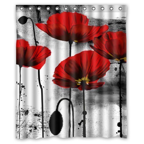 Beautiful Vintage Red Poppy Flower Ink Painting Shower Curtain 60x72 inches
