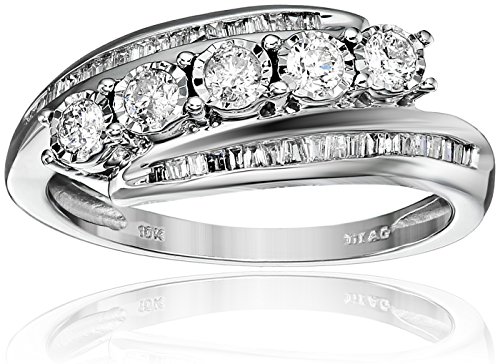 10k White Gold Diamond Slant Anniversary Ring (1/2cttw, I-J Color, I2-I3 Clarity), Size 7