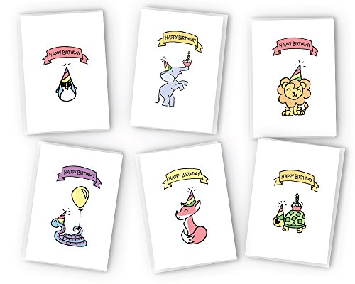Party Animal Happy Birthday Cards for Kids - 24 Cards & Envelopes