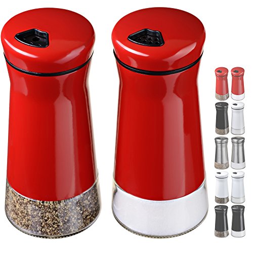 CHEFVANTAGE Salt and Pepper Shakers Set with Adjustable Holes - Red