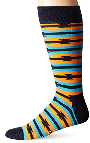 Happy Socks Men's Barb Wire Combed Cotton Crew Socks, Bright Orange, Sock Size: 10-13/Shoe Size:9-11