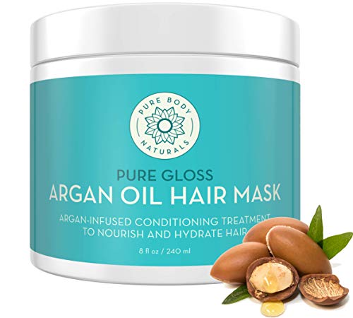 Argan Oil Hair Mask for Damaged Hair, Deep Conditioning Hair Treatment and Moisturizer by Pure Body Naturals, 8 Fl. Ounce