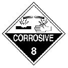 10.75" x 10.75" Black Class 8 Corrosive D.O.T. Placards (25 Placards) - ML-PW10102-VIN