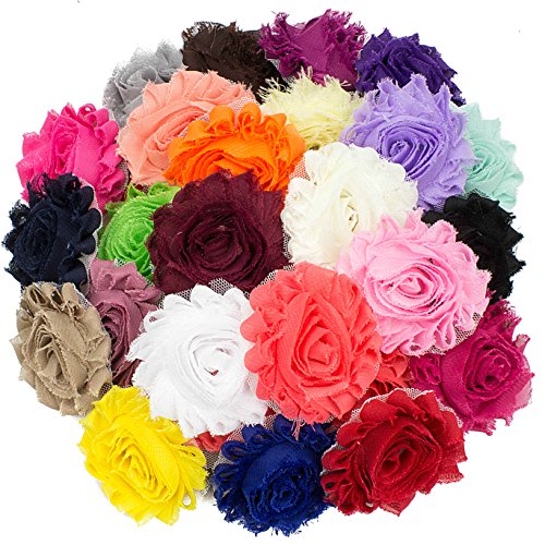 JLIKA 50 pieces Shabby Flowers - Chiffon Fabric Roses - 2.5" - Solids Color Mix - Single Flowers Grab Bag
