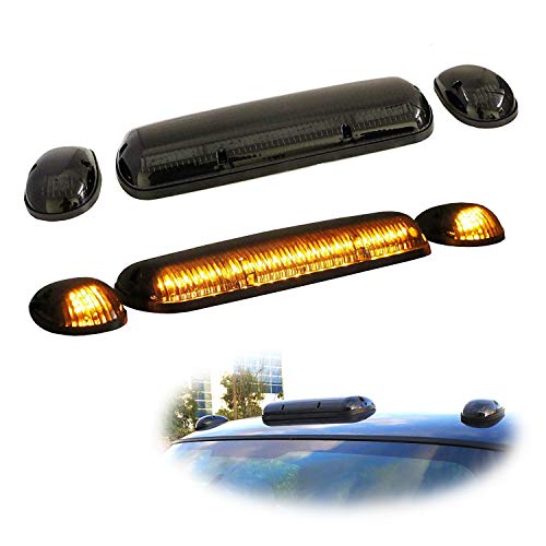 iJDMTOY 3pc-Set Black Smoked Cab Roof Top Marker Running Lamps w/Amber LED Lights For Truck Pickup 4x4 SUV