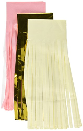 olyclass 15PCS Tissue Paper Tassels Garland, Mixed 3 Colors(Ivory+Pink+Shiny Gold)