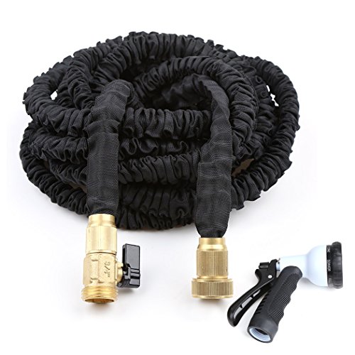 Crenova 50 Feet Expandable Garden Hose Compatible with 3/4 inch Sprayer Nozzle with Complete Brass Connector and Solid Brass Ends - Double Latex Core - Extra Strength Fabric (Spray Gun is Included)
