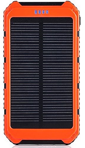 PYRUS 10000mAh Solar Battery Panel Dual USB Port Portable Solar Charger External Backup Pack Power Bank for iPhone Samsung Tablet Ipad (Orange)