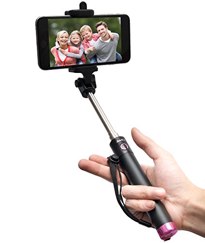 Selfie Stick, Baslo Compact Foldable Selfie Poles Extendable Wireless Bluetooth Selfie Sticks with Built-In Remote Shutter Best Selfie Stick for iPhone Samsung and Other Mainstream Smart Phones (Pink)