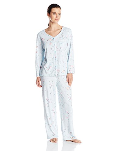 Karen Neuburger Women's Clearwater Blue Floral Print Long Sleeved Pajamas, Small