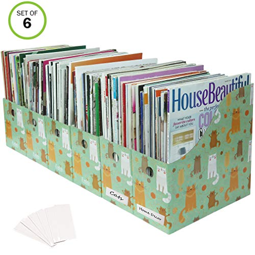 Evelots Magazine File Holder-Organizer-Full 4 Inch Wide-Cat Style-W/Labels-Set/6