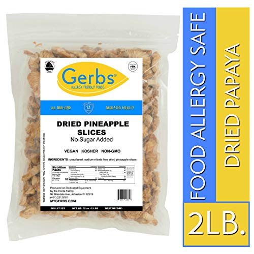 Gerbs Dried Pineapple No Sugar Added, 2 LBS - Unsulfured - Top 14 Food Allergy Free & NON GMO - Product of Thailand
