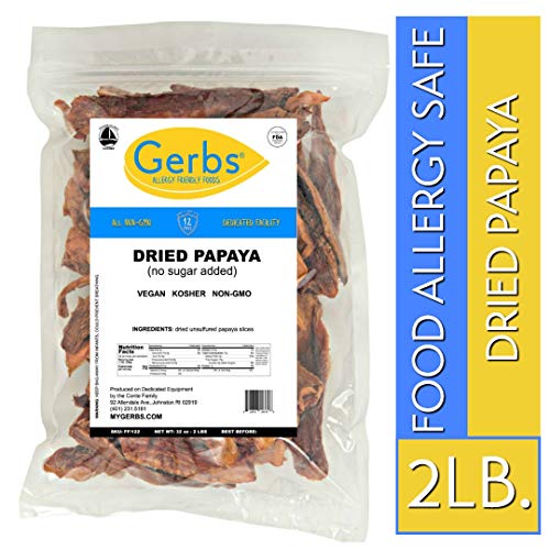 Gerbs Dried Papaya No Sugar Added, 2 LBS - Preservative Free & Unsulfured - Top 14 Food Allergy Free & NON GMO - Product of Thailand