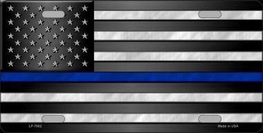 Smart Blonde LP-7902 American Flag With Blue Police Novelty Metal License Plate