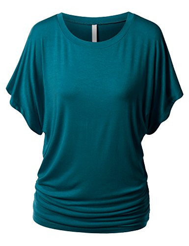 URBANCLEO Womens Dolman Sleeve Top Boatneck Drape Shirts-TEAL-2XL