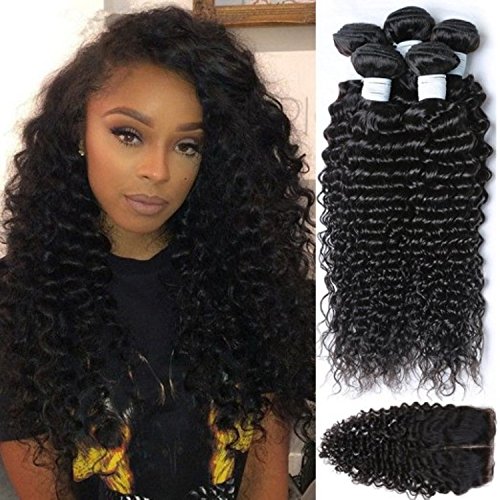 Etino 4Pcs lot Brazilian Virgin Hair Free Part Lace Closure With 3 Bundles 100% Unprocessed Human Hair Weave Extension Deep Wave (8inch 10inch 12 inch+8closure)