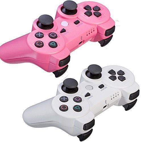 Lot 2 Wireless Bluetooth Game Controller for PS3 (White+Pink)