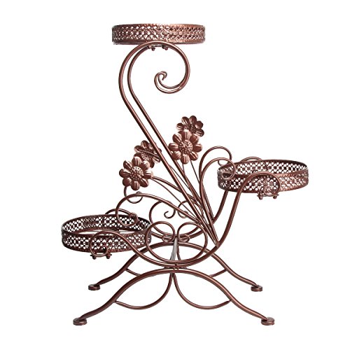 Dazone 3-Tiered Scroll Decorative Metal Garden Patio Standing Plant Flower Pot Rack Display Shelf Holds 3-Flower Pot (Bronze)
