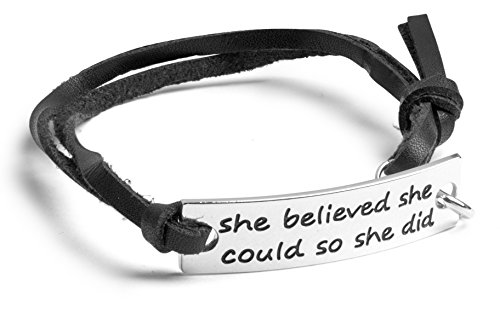 Inspirational Jewelry Bracelet – She Believed She Could So She Did Quote – Silver Charm Wrap – Engraved Sayings for Inspiration, Motivation for Women, Men, Teens, Girls