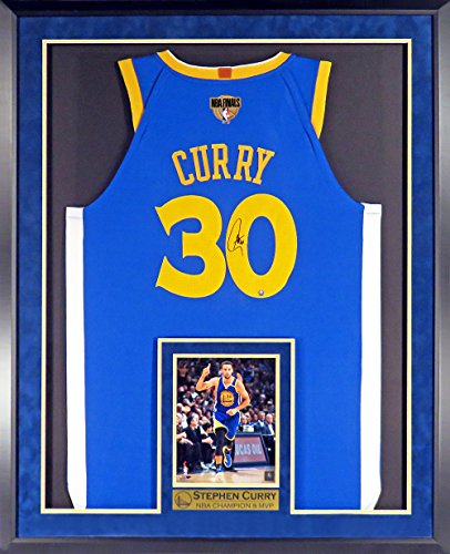 GS Warriors Stephen Curry Autographed Road Blue Jersey w/2018 Finals Patch (w/Inset Photo &NBA CHAMPION & MVP Plate) Framed
