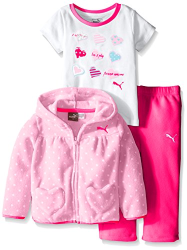 PUMA Baby Girls 3 Piece Hooded Polka Dot Jacket Tee and Solid Pant, Pink Glow, 24M