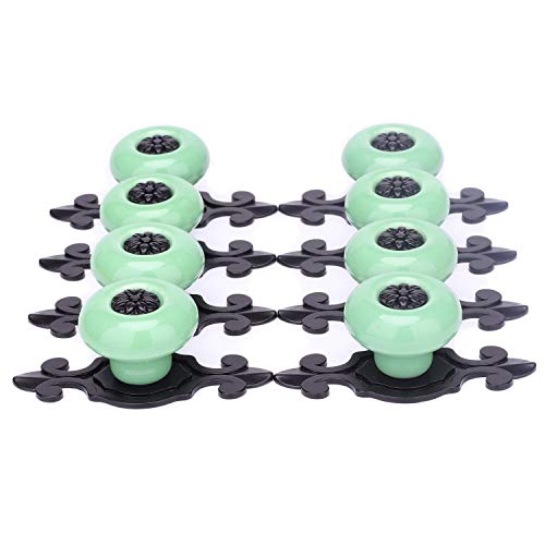 SunKni 8 Pack Vintage Ceramic Knobs for Dresser Drawers Kitchen Cabinets Cupboard Wardrobe Furniture Door Ceramic Knobs and Pulls Large Round Knobs with Back Plate (Black-Green)