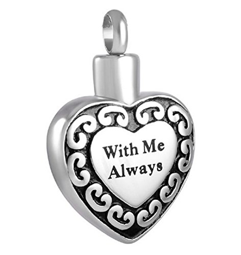 "With Me Always Heart" Cremation Urn Jewelry, Stainless Steel Pendant Necklace for Men and Women Keepsake