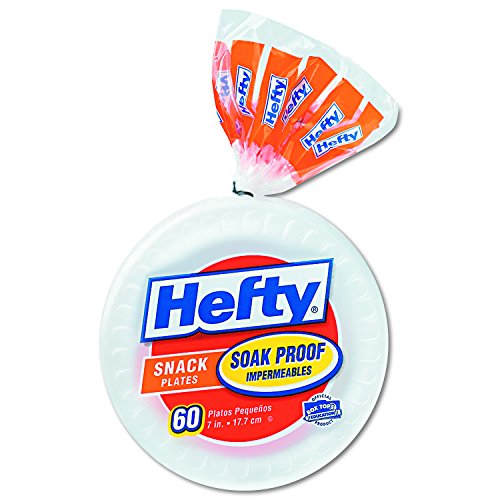 Hefty Everyday Foam Snack Plates (White, Soak Proof, 7-inch, 60 Count)