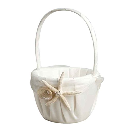 AllHeartDesires Beach Theme Ivory Wedding Flower Girl Baseket with Starfish