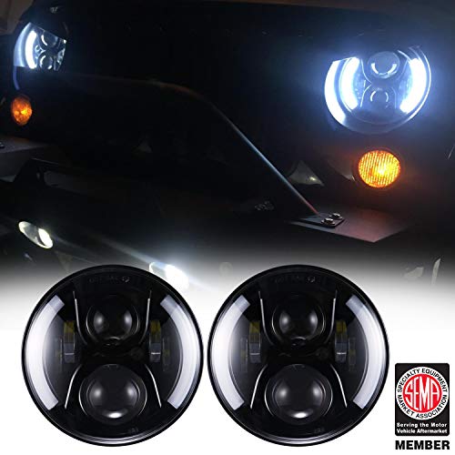 Hooke Road 7 inch LED Headlights w/DRL Halo Angel Eyes & Turn Signal for 97-18 Jeep Wrangler JK TJ & Wrangler Unlimited