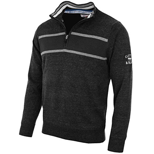 Cutter & Buck 2015 Wind-Block Thermal Stripe Sweater Golf Jumper Fully Lined Pullover